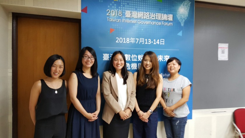 Ying-Chu Chen, Peifen Hsieh, Jessie Tang, Evonne Tsai, Hsin-I Chiu, Crystal Tu are the panellists participating TWIGF 2018 TechGIRLS. Rio Kao is the moderator. The article is translated by Crystal Tu.