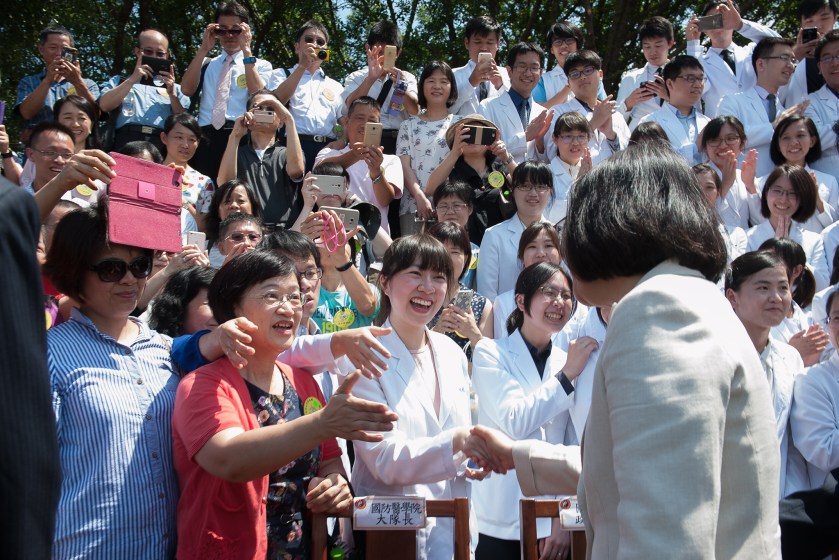 Image credit: 總統出席「106年三軍六校院聯合畢業典禮」,與畢業生握手致意 by 總統府/Flickr, license CC BY 2.0