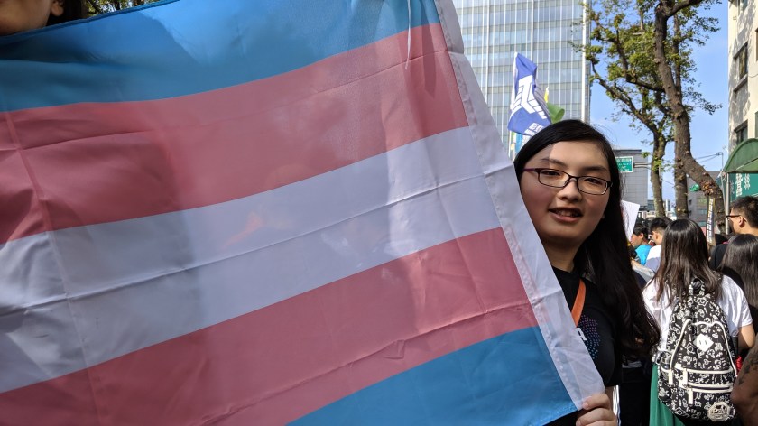 Image credit: 2019 同志遊行 參與者帶著跨性別旗幟 by Winnie Chloé Chen, license: CC BY-SA 4.0