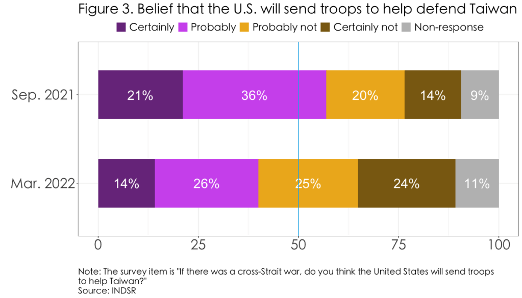 3. Taiwanese people have become more conservative about whether the U.S. will send troops to help Taiwan