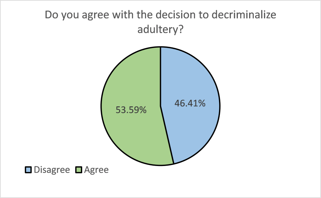 We asked respondents the following question: ‘In June 2021, the Taiwanese legislature amended Article 239 of the Criminal Code to remove the following statute: “A married person who commits adultery with another shall be sentenced to imprisonment for not more than one year; the other party to the adultery shall be subject to the same punishment.” Do you agree with this decision?’