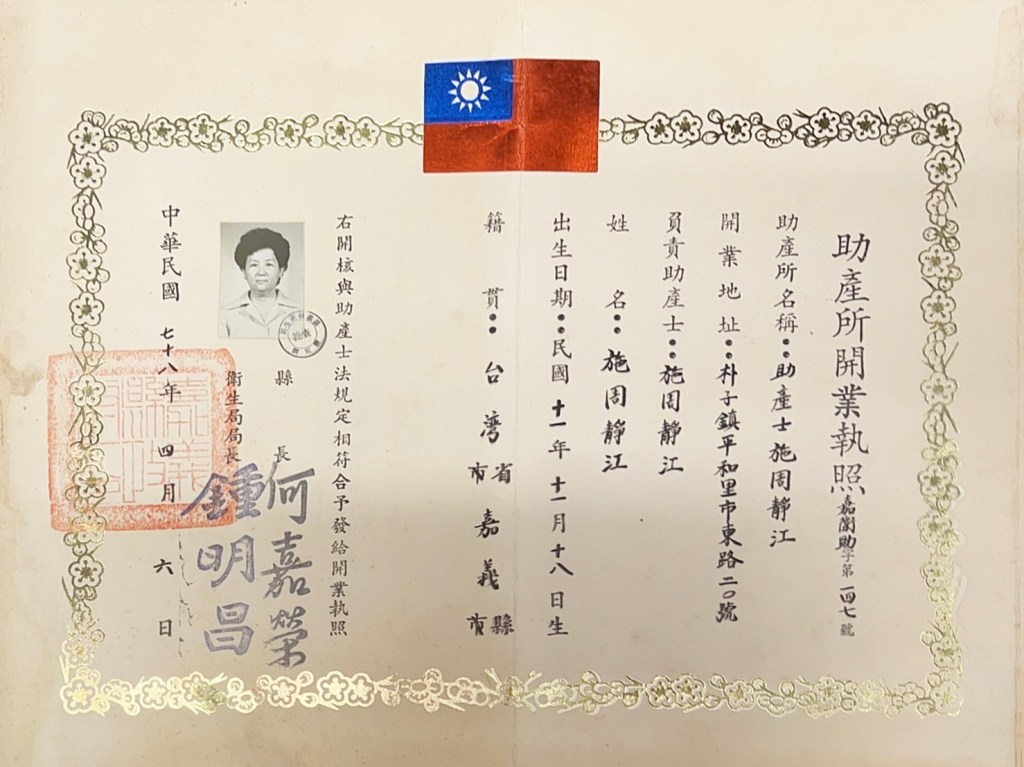 This essay is dedicated to the late Shih Chou Ching-chiang, a forerunner of modern midwifery in Taiwan. Born on 18th November 1922, Shih Chou was first certified by the Japanese colonial government for her medical profession. She was certified again by the provincial Taiwanese government in 1948 and received her license issued by the Chiayi County Government in 1950 to run her midwife practice at the age of 28. Located in Putsu Township, her home was also her practice and the first contact with the world for many people of Putsu who were delivered by her. Greeting nearly 10,000 newborns, Shih Chou passed away at the age of 96, and a public campaign ensued to preserve her century-old home. The campaign failed to save it, and her home was demolished on 2nd May 2022, six months before her 100th birthday.