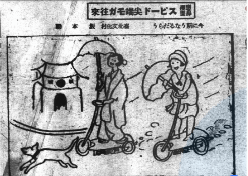 Image credit: 飯本勤〈臺日漫画 第十卷四百十九號 應募漫畫 スピード尖端モガ往來〉,《臺灣日日新報》1930/6/4, Issue 4.